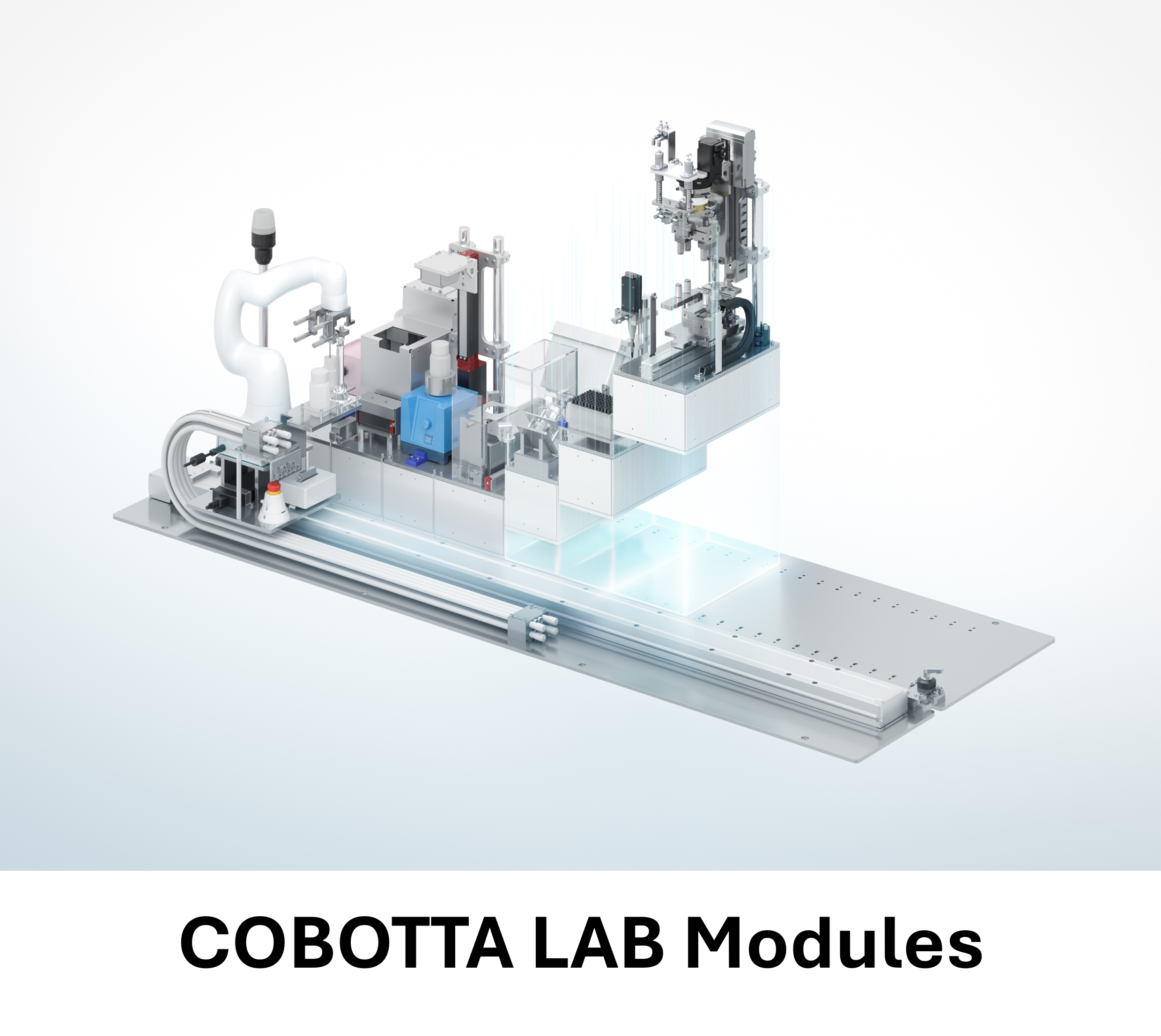 2つ目は、液体処理や、測定、攪拌など、研究工程を分割し、標準モジュールとして自由に組み合せが可能なCOBOTTA LAB Modulesをご用意しました。