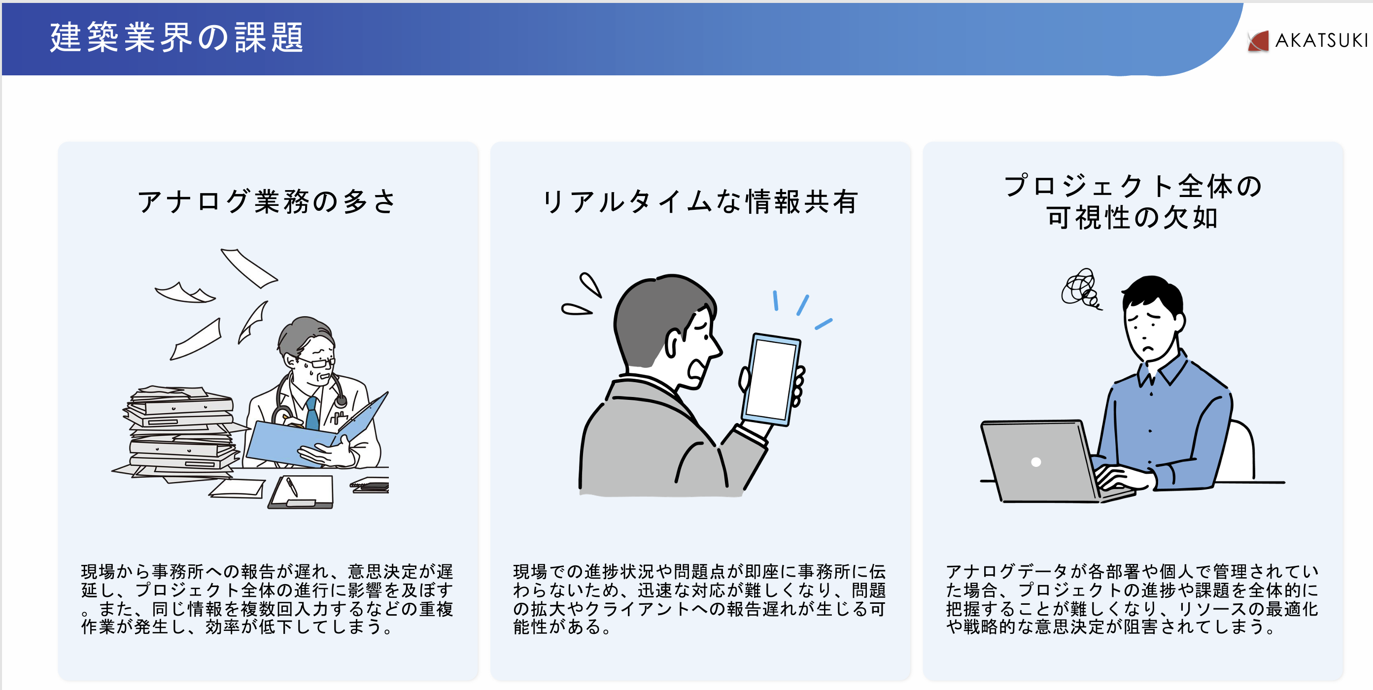 ・若手への技術・ノウハウ継承:日報や写真、図面をデータ化して共有することで、ベテランのノウハウを視覚的に共有。若手社員の即戦力化を早め、社内全体の生産性底上げに成功しています。
