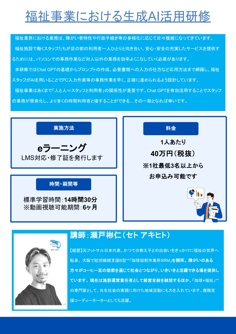 福祉の現場で、生成AIを「実務で使える力」に変えませんか?