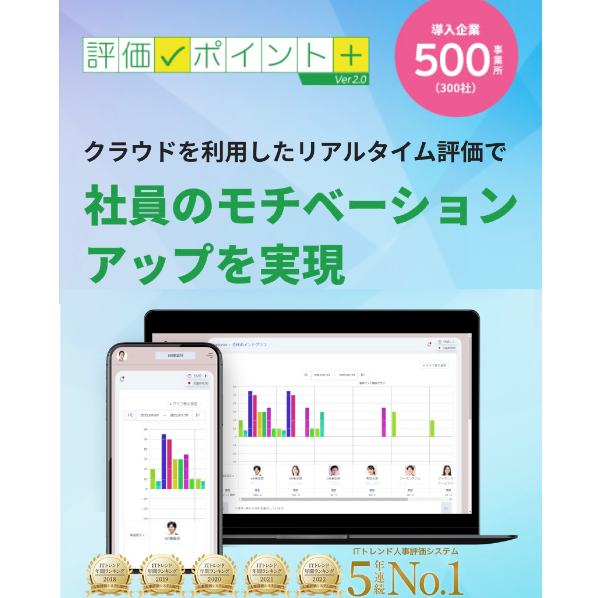 ・行動重視の評価プラットフォーム:日々の業務プロセスやポジティブな行動をリアルタイムで記録・評価するクラウドサービスです。従来の中長期的な査定だけでなく、日常の「頑張り」を即座に可視化します。